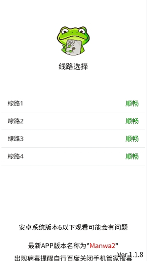 1、在本页面下载漫蛙软件,安装后打开并选择线路进入
