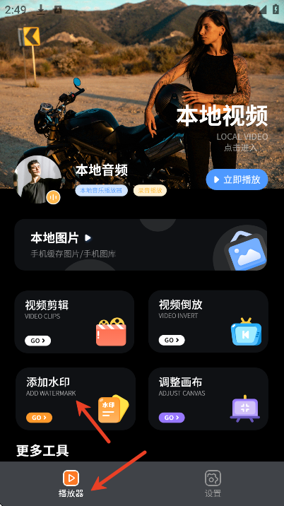 2、点击下方的播放器页面,选择添加水印
