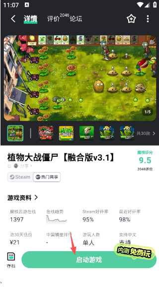 4、最后点击屏幕下方的“启动游戏”即可,内测期间可以无时长限制免费游玩。