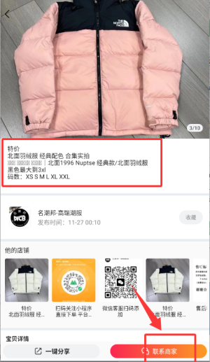 3、选定商品进入详情页,查看信息后点击联系商家按钮进行对接。