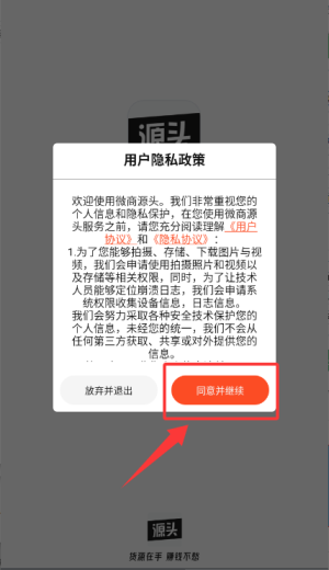 1、启动软件后查阅用户隐私政策内容,确认后点击同意并继续进入。