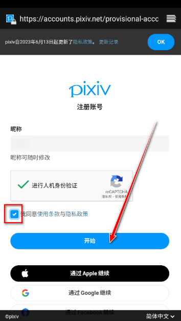 3、根据要求输入自己的昵称,并进行人机验证。