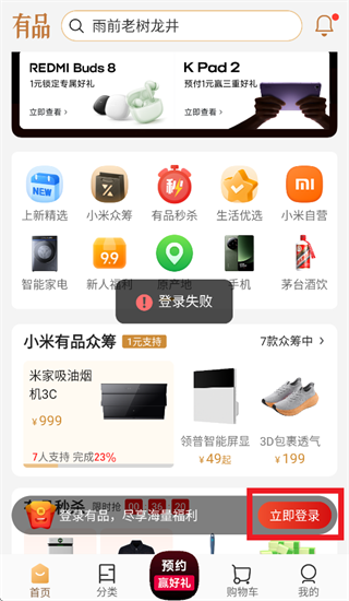 打开小米有品app,进入后点击立即登录