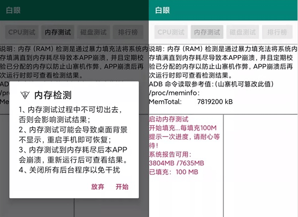 通过暴力填充的方式直至 App 闪退,以此来辨别手机的真实运存大小,注意事项使用过程中都有,我就不赘述了。