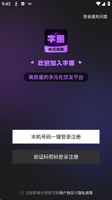 字圈app是一个专为亚文化圈内人设计的交友平台。它支持多元性别性倾向及小众情趣爱好的选择,通过立体化人格匹配玩法,实现精准高效的交友。
