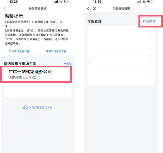 1、点击首页左上角位置信息,选择年报市场主体所在城市,点击【市监】-【填写年报】-【年度报告填写】,完成人脸识别验证,即可进入年报系统。