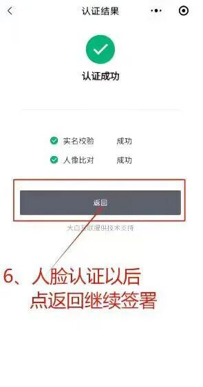 按照相关流程扫脸、签字、确认,认证完成后,点击“返回”,继续签署