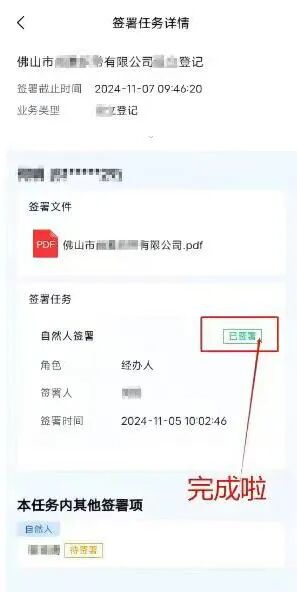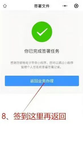 显示“你已完成签署任务”后,点击“返回业务办理”