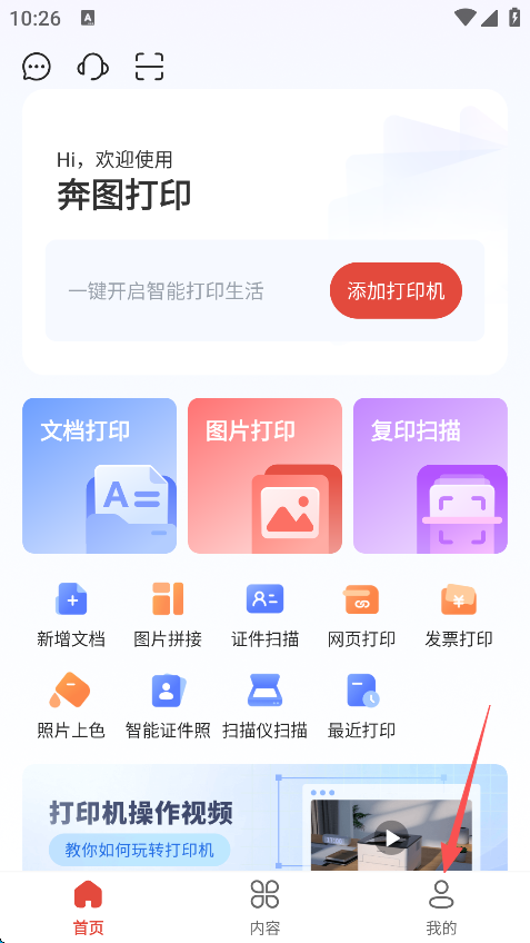 1、首先下载最新版本的奔图打印机app,然后进入到主界面中。