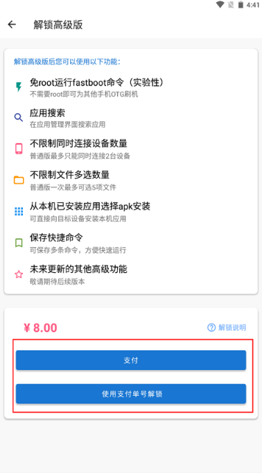 (2)在为已解锁设备上进行刷机/恢复出厂设置/双清/ROOT/解锁BL等操作之前,一定要先取消解锁状态,否则支付单号将无法使用。卸载应用和清除应用数据不会导致支付单号失效。