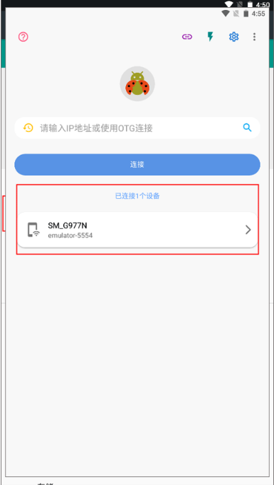 4、此时,我们在新的设备上打开甲壳虫ADB助手,输入被控机的IP地址和端口,就可以连接到手机设备了。