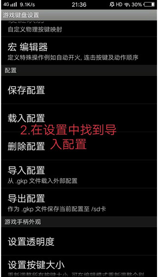 2、进入设置菜单,找到“导入配置”选项。