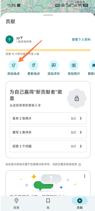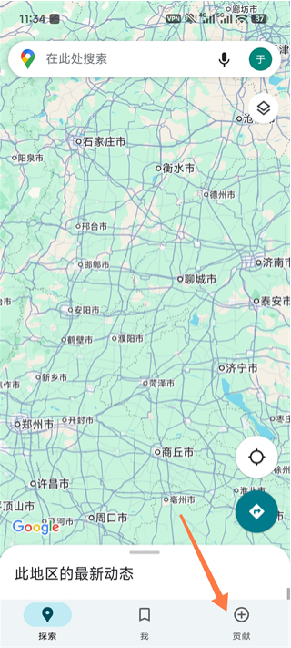 1、打开谷歌地图3d实景地图App,点击贡献板块