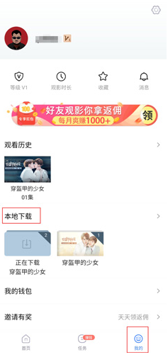 1、用户在我的页面中,找到本地下载中要删除的视频;