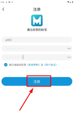 4、输入账号,密码,重复密码,勾选用户协议,点击注册