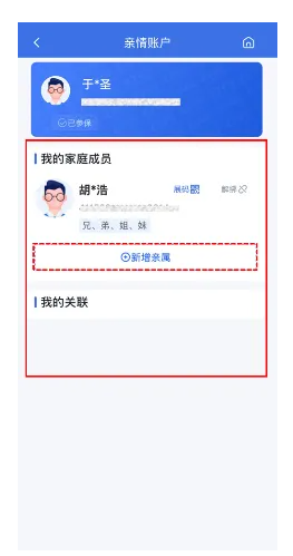 2.在【亲情账户】主界面下,可以看到当前绑定的成员信息,点击【新增亲属】