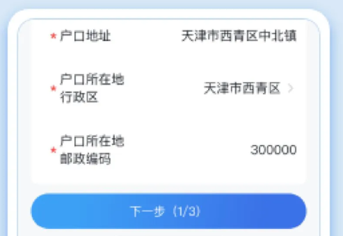 3.填写您的个人信息及户籍信息,确认无误后点击【下一步】