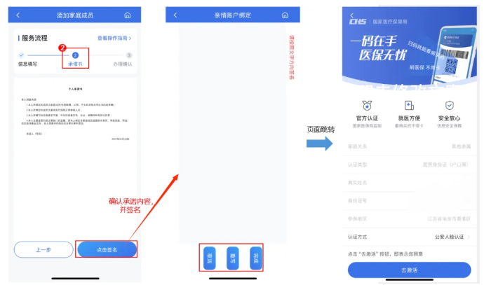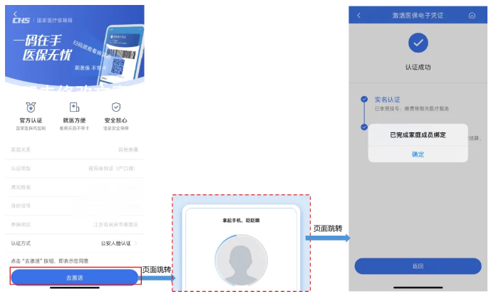 5.在【激活】页面,确认信息之后,点击【去激活】按钮,进入人脸识别,按照引导提示完成被绑人扫脸即可办理完成。