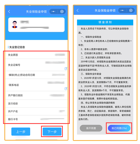 界面弹出领金须知,仔细阅读领金须知,了解有关失业保险相关政策法规,倒计时结束后, 点击我已同意