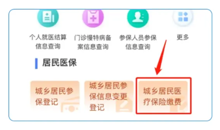 找到居民医保版块,点击 【城乡居民医疗保险缴费】