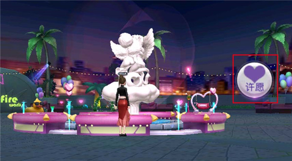 玩家们进入温泉广场后,走到正中央便可以看到欧式建筑风格的许愿池,走近许愿池后点击一旁的“许愿”按钮即可触发该玩法。