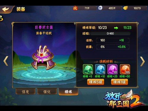 如果说武将的培养和阵容的搭配是最为重要的,那么整体战力的提升也是不可忽略的环节。游戏提供了多种方式让玩家提升自己的战力,包括了装备的升级,专属宝物的培养,配饰的精炼,点亮将星等等,因此在日常的游戏中也得多注意战力的提升。