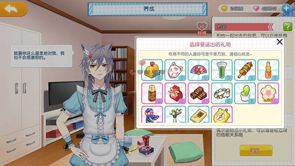 1、猫咪男子们可以通过送礼物、完成委托、约会来提高好感度。送礼物时,可以先参考角色的喜好,让送礼获得的好感度最大化