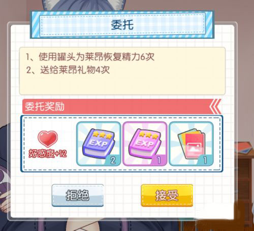一旦甜品店等级超过15以后,就会有角色委托。很多委托都是要给角色送礼物,这个时候才应该给角色送他喜欢的礼物。这样既能完成委托获得好感度,也能送礼物获得好感度。