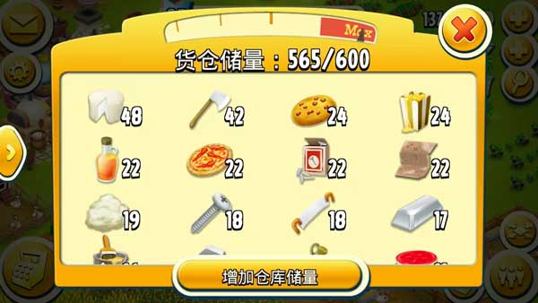 货仓建材是全游戏自始至终最重要的东西,简直是铁打的货币。升级货仓会提升货仓25单位的容量,下一级货仓的升级所需要的货仓比上一级每种多一个。货仓的极限容量是10000,要很久很久才能玩到。后期升舱路漫长,货仓的实用性稍显下降,但是货仓的交换性会逐步增强。可以用货仓去交换食材、产品,食材产品用于小镇、货车、客人等…(我还没有玩到这个境界)