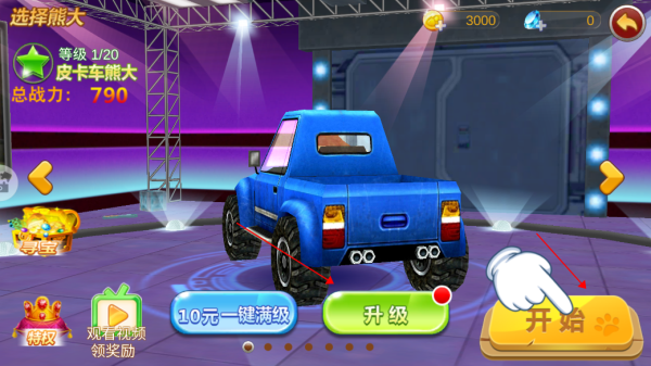 1、开局熊大行驶卡车,熊二则是持驾飞机,别瞧这仅是平民装,合体后战力不容小窥,开始前修复一下。