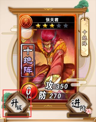在封神榜界面中,点击任意卡牌,即可进入卡牌进阶界面。升级卡牌可以解锁卡牌技能,并且提升卡牌属性。所以,前期升级卡牌、加强战斗力才是王道哦。