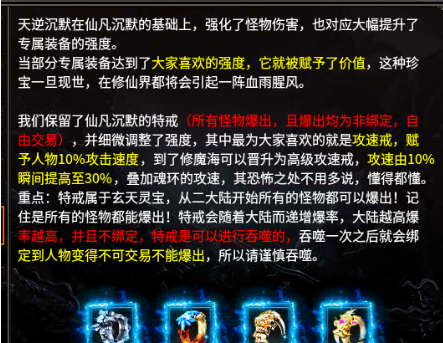 6、二大陆开始所有怪物爆出四大追梦级的特戒,详细查看游戏顶部攻略。二大陆除了这些细节,就是要完成家传宝物收集,这个看脸,有小号就挂小号帮忙打。没小号就跳过,去三大陆打到好的专属了或者材料和有多余家传的玩家互换就行了。