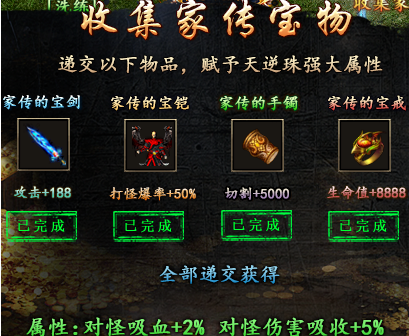 二大陆收集家传宝物剧情+2%吸血 还有5%减伤