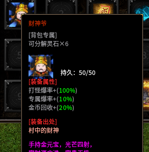 金币回收:二大陆背包专属财神爷。