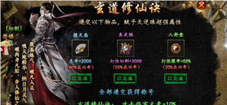 几率和必成两种,一种要仙玉,另一种不要(20%几率成功)
