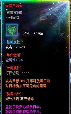 3、毒王鼎:这个专属附带非常好看上毒的特效,挂机打怪必备的核心级专属。