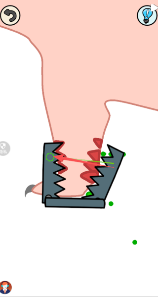 3、比如这个关卡,需要将舌头拉长,将两个虫全部吃掉才可以过关。