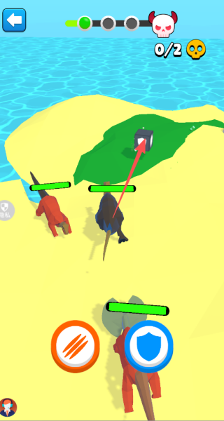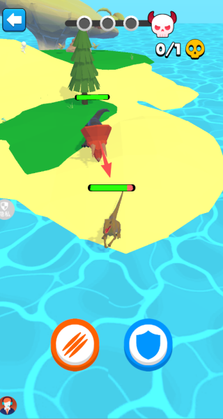2、我们需要与关卡中的恐龙对手进行战斗,善用攻击以及防御的按钮吧。