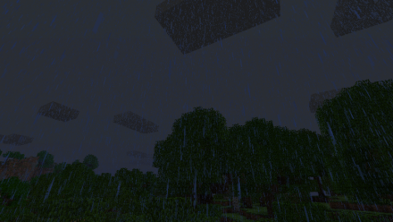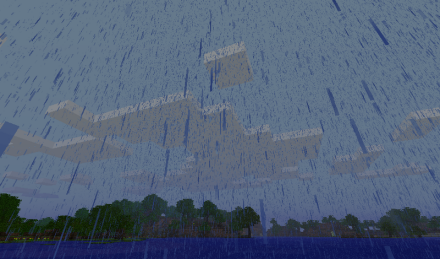 雷雨:雷雨天雷暴比正常的降雨更暗。即使是在白天光线水平也只有7级。这黑暗足以令攻击性的生物出现。然而,在夜间雷暴不会将亮度水平降低为0级。闪电来袭时会制造出火。伴随的降雨通常可以在火灾蔓延前扑灭它,但突出的物品可以防止雨扑灭火,允许火势蔓延。如果玩家在和平或简单难度游戏,雷击将不会制造出火焰。闪电是强行写入的实体,在程序里找不到闪电的贴图。闪电可以出现于没有降雨的沙漠生物群系中。(注:有几率生成骷髅骑士以及闪电苦力怕以及闪电击中村民形成的女巫)