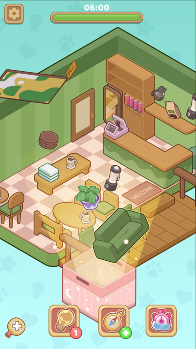 1、当你进入关卡后,在房间里找到神秘箱子并点击它,随即就会有各类家具和物品随机呈现出来。