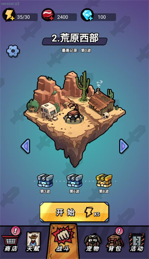 3、放好武器后点击开始开战就可以进行闯关,角色会自动使用武器来攻击敌人,消灭敌人可以获得经验。