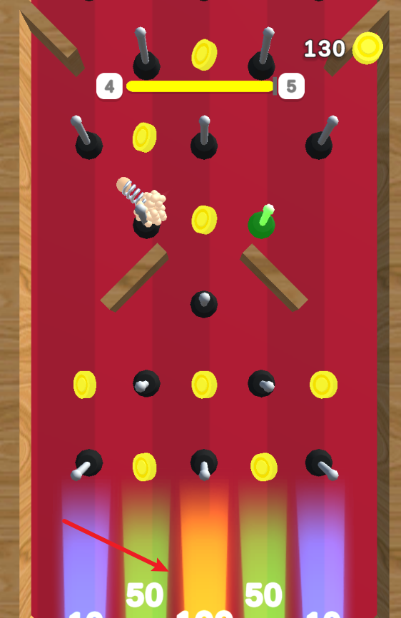 4、抵达终点后就会出现这样的机器,根据掉落的位置来决定金币奖励的数量。