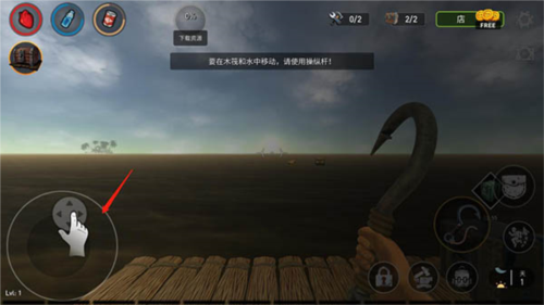 2、如果想在木筏和水中移动,使用操纵杆控制;