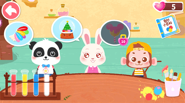 奇妙手工调色宝宝巴士魔法书是一款来自宝宝巴士推出的关于宝宝认识颜色的休闲益智类的游戏,这款游戏中有很多超级可爱的动物,还有很多有趣的内容,都是孩子喜欢的画风以及浅显易懂的内容,让孩子在玩中就可以学习到颜色,还能认识颜色搭配。