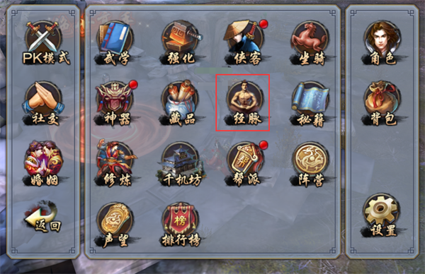 侠客角色等级达到54级即可开启经脉系统,可以通过点击角色头像,在弹出的窗口中点击“经脉”图标,打开经脉系统界面。