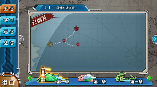 第一个出征就是最常规的推图,各位提督只要击败了每个地图的最终BOSS点的敌军就可以开启下一张海域地图。