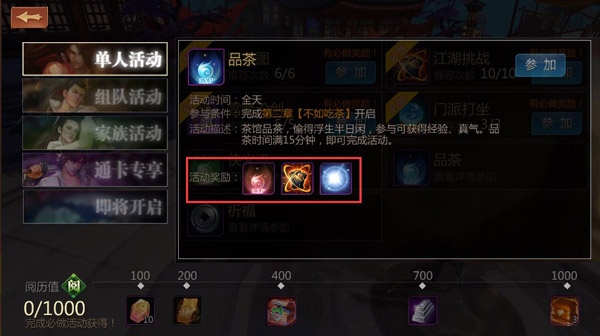 喝茶(具体玩法可参考“休闲玩法—茶馆玩法”) 、打坐3种方式获得;其中打坐是最快,也是最容易获得真气的方法之一!