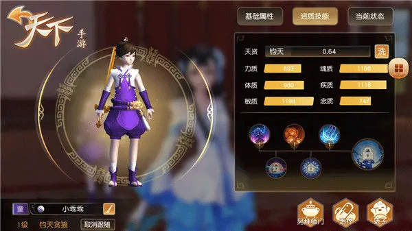 童年时期的孩子升级时,将根据门派和对应资质不同获得不同的六项属性点数及生命、技力值,先天资质越好,对应后天属性也会越多!