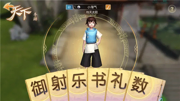 幼儿期孩子的培养至关重要,他通过学习礼、乐、射、御、书、数六艺来增加对应的资质,不同的技艺加不同属性,学习20次六艺进入童年时期。