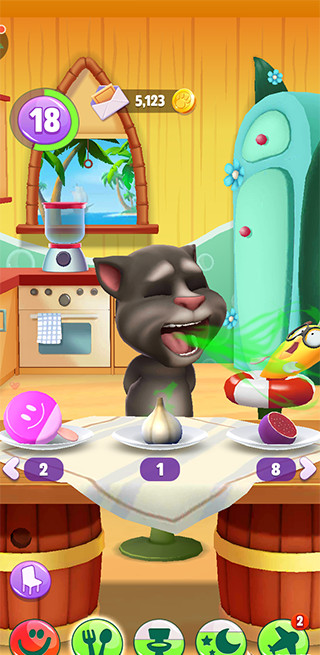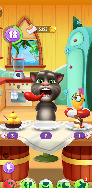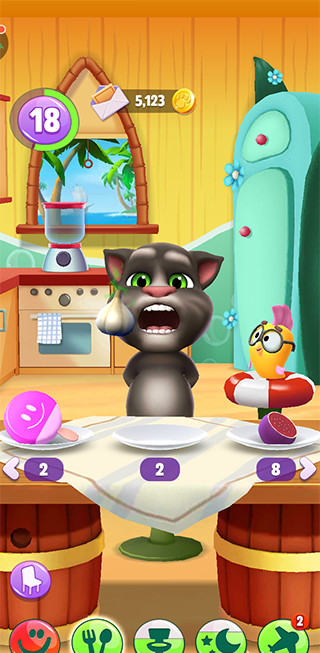 1、养育你专属的汤姆:和他玩游戏,喂他最喜欢的食物,带他上床睡觉。
